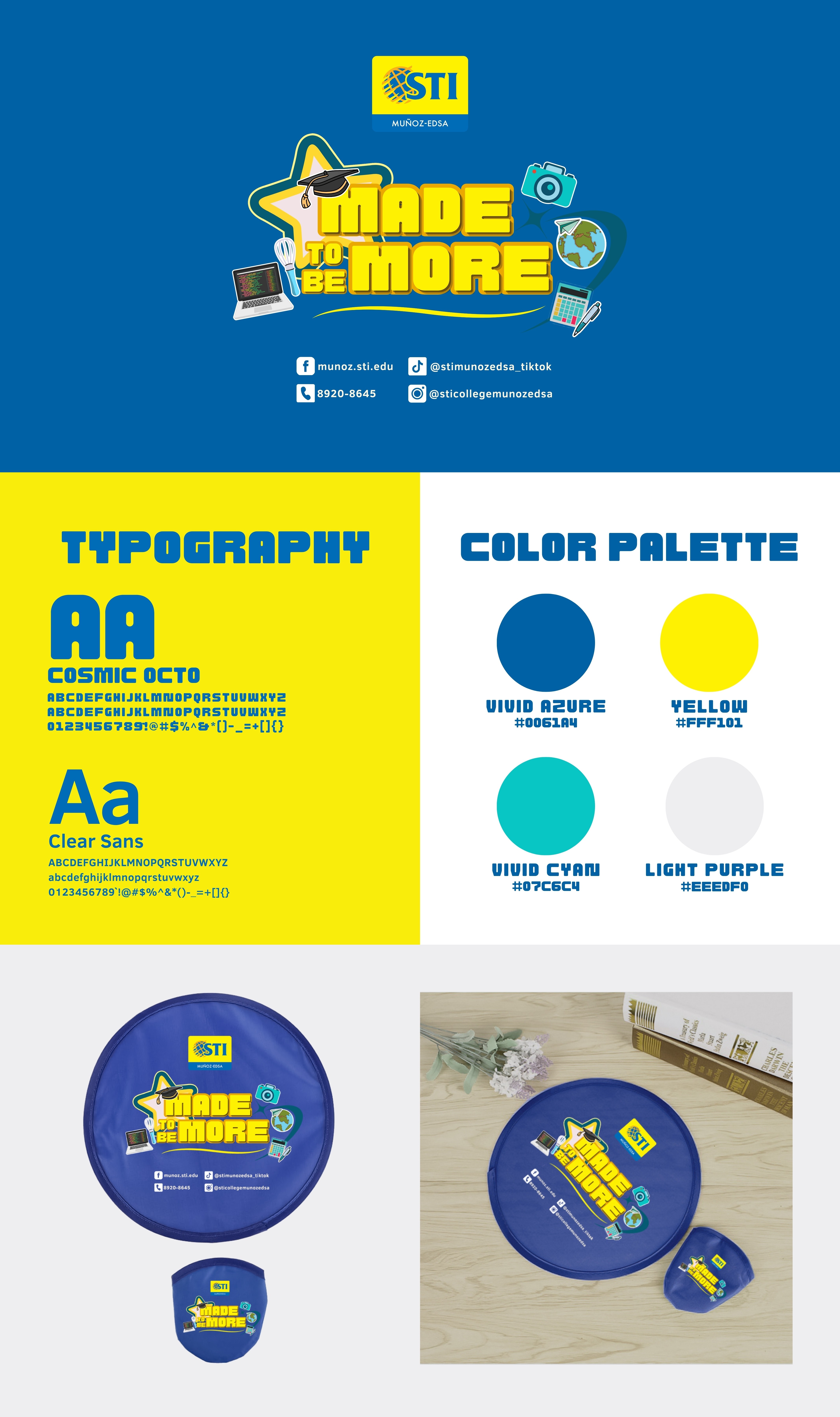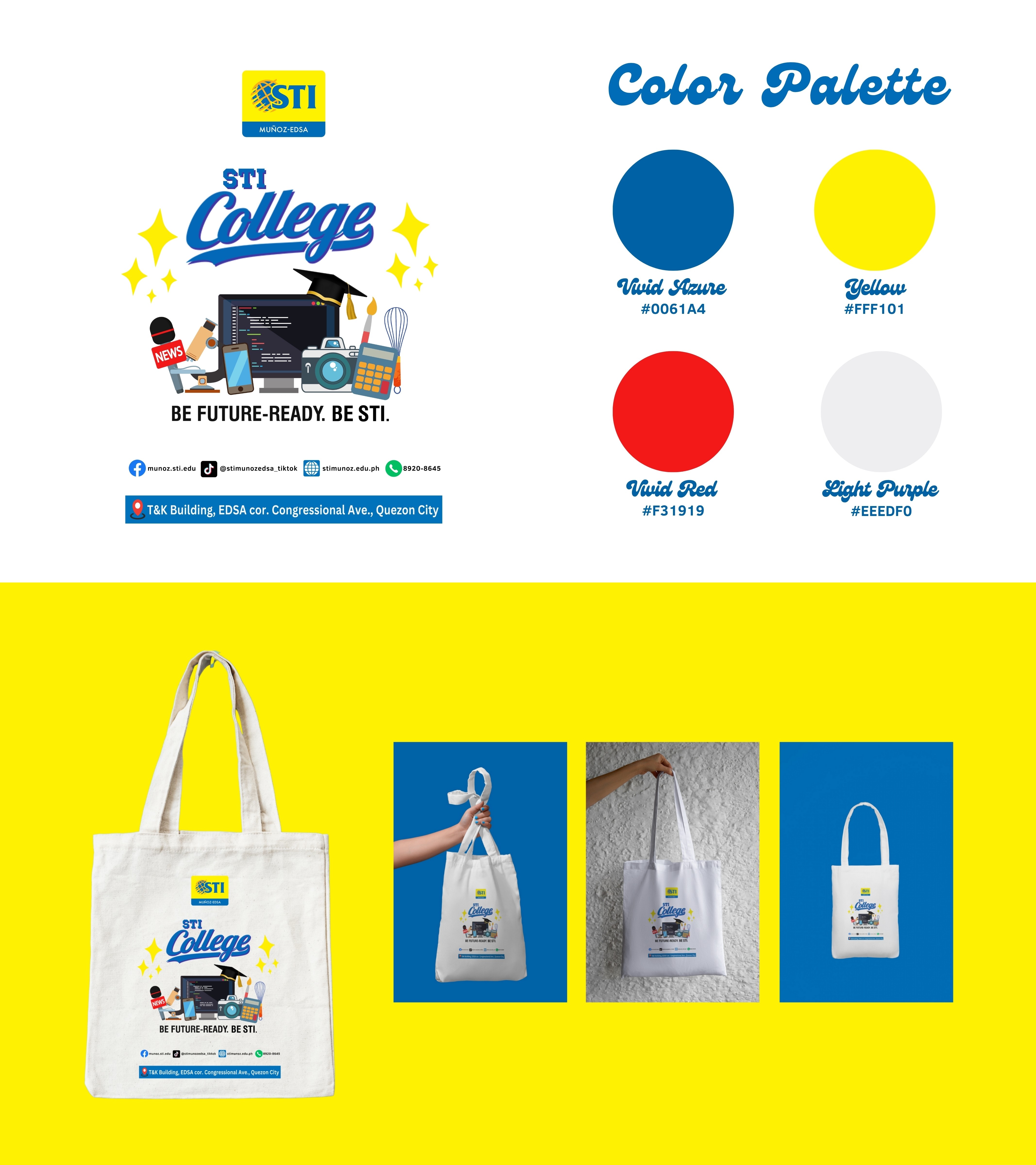 At STI College, I took the lead in conceptualizing and producing branding and merchandise designs that reflected the institution’s identity. I designed logos and layouts for various promotional items including tote bags, foldable fans, aprons, pull-up banners, and tarpaulins used for school events and outreach programs. These materials played a vital role in enhancing campus visibility and fostering school pride through cohesive and professional branding.